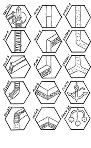 A set of hexagonal map icons and tiles for use in city maps, world maps and the like.